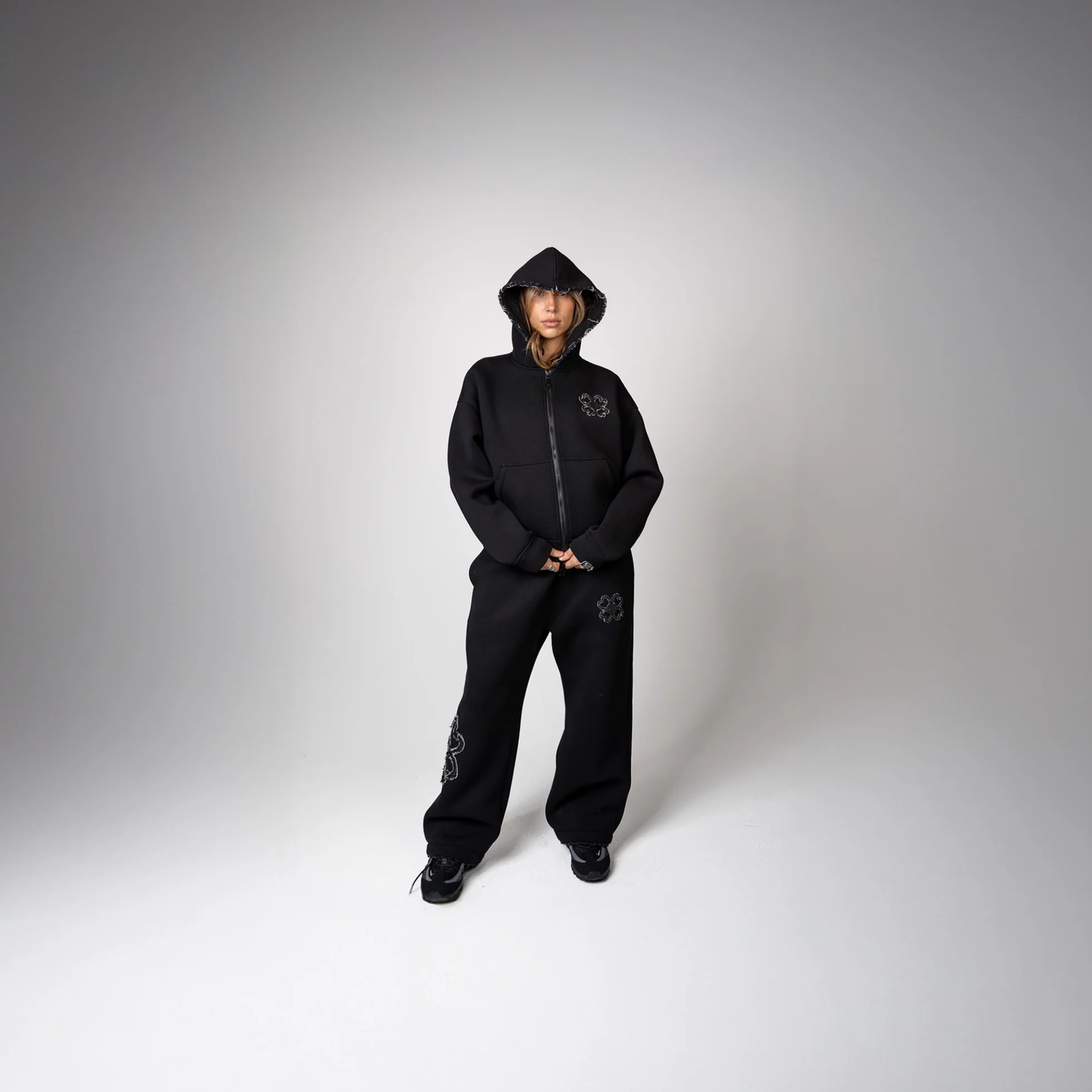 Den oversized pasform, de ikoniske kløverblade og det præcise håndværk gør den til et moderne og sofistikeret stykke tøj – perfekt til en afslappet stil.